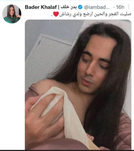 شاهد: المتحول بدر خلف يغضب جمهوره بصورة إرضاعه لابنه