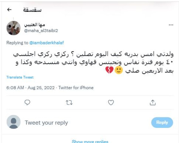 و تلقى خلف هجوم كبير من غالبية متابعيه بسبب ما يقوم بنشره من أكاذيب حسب قولهم، حيث علق غالبيتهم تعليقات سلبية، ومنهم من قال: "ولدتي امس بدريه كيف اليوم تصلين ؟ ركزي ركزي اجلسي ٤٠ يوم فترة نفاس وتجيتس قهاوي وانتي منسدحه وكذا و بعد الاربعين صلي".