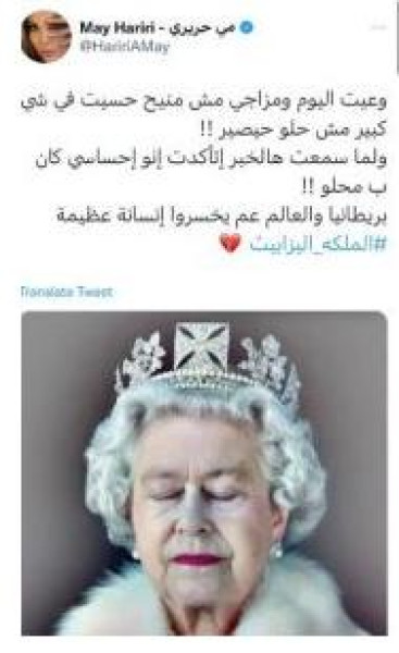 نشرت مجموعة من نجمات العالم العربي، عبرمواقع التواصل الاجتماعي المختلفة، عبارات حزن ورثاء عقب وفاة ملكة بريطانيا إليزابيث الثانية.