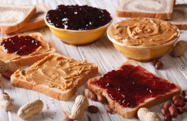طبقي كلّ قطعة خبز بالمربى على قطعة أخرى بزبدة الفول السوداني.