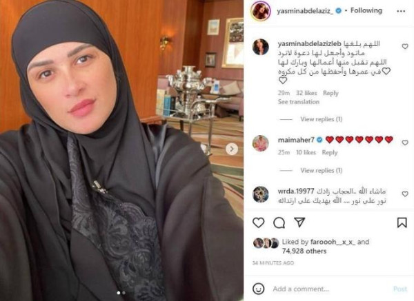 أطلت الفنانة المصرية ياسمين عبد العزيز على جمهورها بصورة جديدة لها على حسابها على مواقع تبادل الصور "إنستغرام"، ظهرت فيها وهي ترتدي عباءة سوداء والحجاب أثناء تأديتها مناسك العمرة في الأراضي المقدسة.