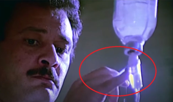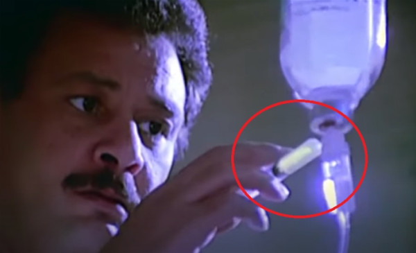 ويكمن هذا الخطأ في أحد المشاهد التي يحاول فيها فاروق الفيشاوي حقن المحلول بمادة سامة وهنا نرى بوضوح عدم وجود سرنجة في الحقنة وتظهر الحقنة ودن سرنجة بشكل أوضح عندما تسقط المادة السامة على الأرض.