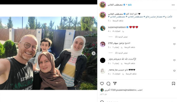 و علق الفنان السوري على الصورة التي نشرها عبر حسابه الخاص على تطبيق تبادل الصور (إنستغرام) قائلًا: "الأخت وعصابة حبايب خالو".