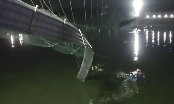 ونقلت وسائل إعلام هندية محلّية عن مسؤولين قولهم، "إنّ حوالى 500 شخص، بينهم نساء وأطفال، كانوا على جسر موربي يؤدّون طقوسًا لمهرجان ديني رئيسي، حين انقطعت الأسلاك التي تدعمه، ما أدّى إلى انهيار الهيكل بكامله في النهر".