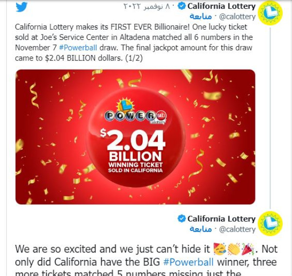 وقال مسؤولو اليانصيب في الولاية إن الفائز اشترى التذكرة من محطة وقود في ضاحية ألتادينا بشمال شرق لوس أنجلوس، وتبلغ تكلفة التذكرة 2 دولار.