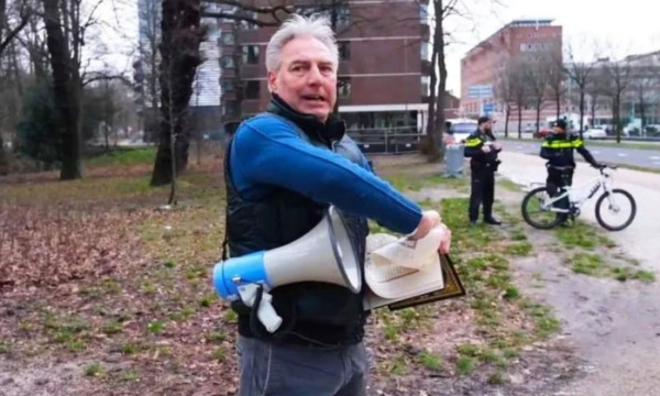 شاهد: متطرف هولندي يمزق صفحات من القرآن الكريم تحت حماية الشرطة