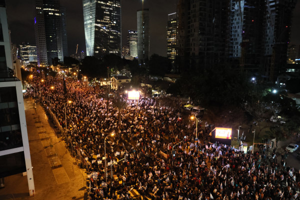 وكانت المشاركة الاحتجاجية الأكبر في تل أبيب، حيث تجمهر الآلاف في ساحة "هبيما" فيما شارك عشرات الآلاف بمسيرة احتجاجية نحو شارع "كابلان".