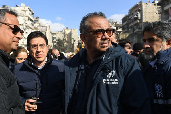 ولدى وصوله السبت إلى حلب أطلق مدير عام منظمة الصحة العالمية تيدروس أدهانوم غيبرييسوس تغريدة جاء فيها "قلبي مفطور لرؤية الظروف التي يواجهها الناجون"، مشيرا إلى البرد القارس والمحدودية الكبيرة لـ"مراكز الإيواء والطعام والمياه والتدفئة والرعاية الصحية".