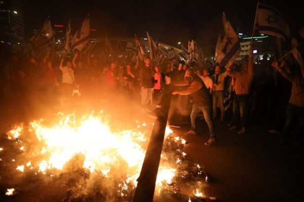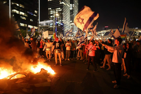 وبحسب قناة (كان) الإسرائيلية، فإن الآلاف من المتظاهرين ضد الإصلاح القضائي وحكومة نتنياهو على جسر "يتسحاق نڤون" في شارع يهوديت تل أبيب الآن.