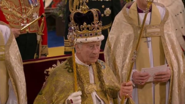 تويج تشارلز الثالث، ملكا لبريطانيا خلفا لوالدته الراحلة الملكة إليزابيث، في كنيسة ويسمنستر في لندن، حيث أدى قسما، أعلن فيه ولاءه للكنيسة والمملكة.