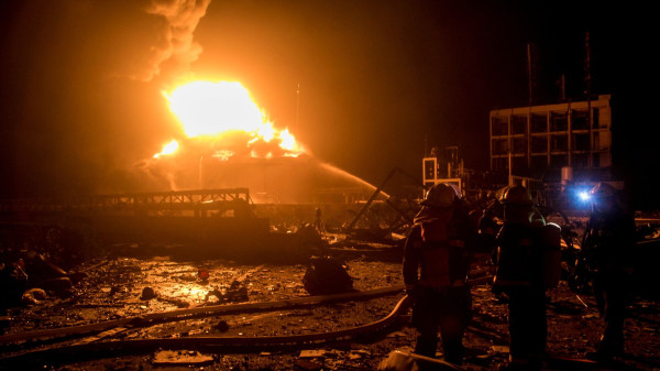 وتمكن رجال الإطفاء من إخماد الحريق الكبير في وسط المدينة، الذي نشأ بعد انفجار الشاحنة المحملة بأسطوانات الأكسجين.