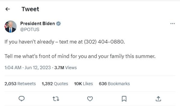 بايدن عبر تويتر: راسلوني على هذا الرقم وأخبروني بخططكم الصيفية