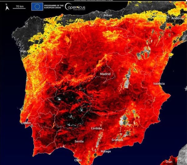 ووصلت درجات حرارة الأرض - مدى سخونة الأرض - في إسبانيا إلى ما يزيد عن 60 درجة مئوية في أجزاء من جنوب البلاد، يوم الخميس، مع تحذير وكالة الفضاء الأوروبية من أن الأسبوع المقبل قد يحطم الأرقام القياسية القارية.