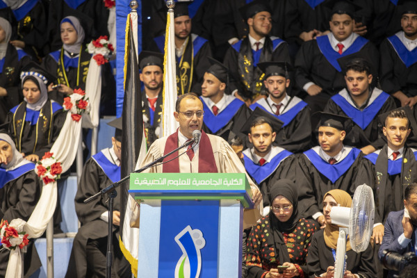 وأفاد: "نُخرجُ اليوم فوجًا ونستقبل فوجًا جديدًا من طلبة الثانوية العامة الذين كانت نتائجهم قبل أيامٍ قليلة، واسمحوا لي أن أباركَ لهم تفوقهم ونجاحهم وأقول لهم إن الكلية الجامعية فاتحةً أبوابها لكم بكل طواقمها وإمكاناتها ومختبراتها من أجل خدمتكم وتقديم الأرقى من العلوم العلمية والعملية والتطبيقية".