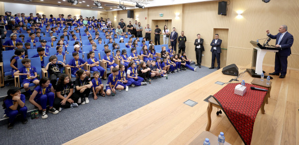 استقبل رئيس الوزراء، محمد اشتية، اليوم الإثنين، في مكتبه برام الله، 200 طفل وطفلة من قطاع غزة من أكاديمية "تشامبيونز"، بحضور القائمين على الأكاديمية.