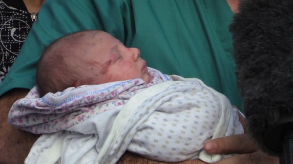 وبعد ساعات قليلة من الحدث، تسلم أقارب الطفل الرضيع "مجهول الهوية مسبقا" من مجمع الشفاء الطبي.