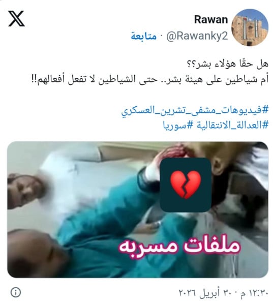 وأضاف ناشطون أن تداول هذه المشاهد أعاد إلى الواجهة ملف الانتهاكات خلال سنوات الحرب في سوريا، مشيرين إلى أن ما يظهر في المقاطع يستدعي تحقيقا جديا وموثقا لكشف الحقائق كاملة وتحديد المسؤوليات المحتملة.