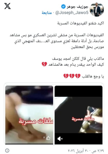 وفي السياق ذاته، عبّر آخرون عن صدمتهم من صعوبة مشاهدة المحتوى المتداول، مؤكدين أن "الإنسان العادي لا يستطيع إكمال الفيديو حتى نهايته" لما يحمله من مشاهد قاسية ومؤلمة.