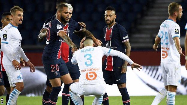 الدوري الفرنسي: مباراة باريس سان جيرمان ومرسيليا تنتهي بـ "عراك" وطرد 5 لاعبين بينهم نيمار و17 بطاقة صفراء