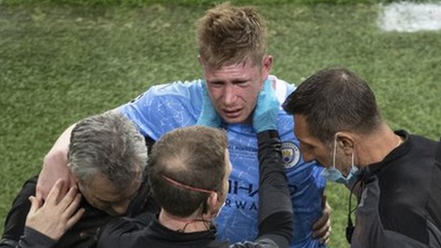 أصيب كيفين دي بروين لاعب خط وسط مانشستر سيتي بكسر في الأنف ومحجر العين، أثناء مباراة نهائي دوري أبطال أوروبا التي خسرها فريقه أمام تشيلسي بهدف مقابل صفر.