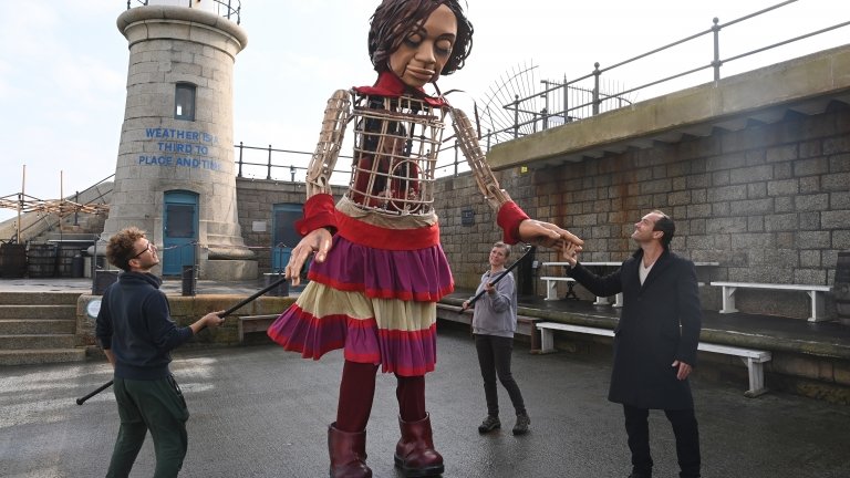 وحظيت أمل الصغيرة باستقبال حافل حين وطأت قدماها الخشبيتان شاطئ مدينة فولكستون الساحلية، محطتها الأولى في بريطانيا، وكان بين مستقبليها الممثل الشهير جود لو، إلى جانب حشد من الأطفال الذين جاؤوا للترحيب بالدمية المتحركة العملاقة التي يبلغ ارتفاعها 3.5 متر.