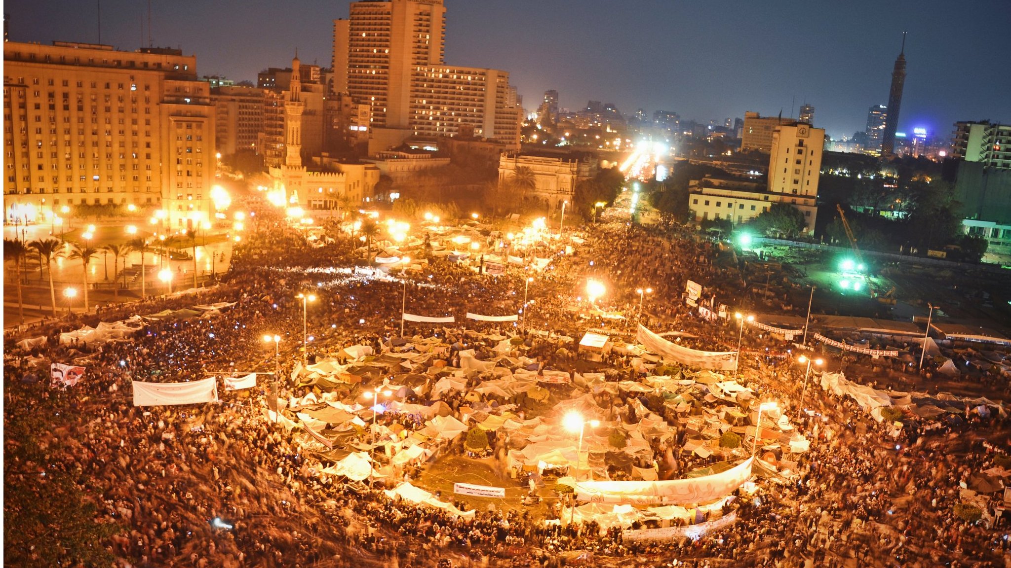 وخلال العقد الأخير، اكتسب المجمع رمزية أخرى تنبع من مكان وجوده، إذ أصبح جزءا من ذكرى التظاهرات الحاشدة التي شهدتها مصر إبان ما يعرف بثورة الخامس والعشرين من يناير/ كانون الثاني 2011، والتي اتخذت من ميدان التحرير مركزا لها. وقد تكرر الأمر مع مظاهرات الثلاثين من يونيو/ حزيران عام 2013.